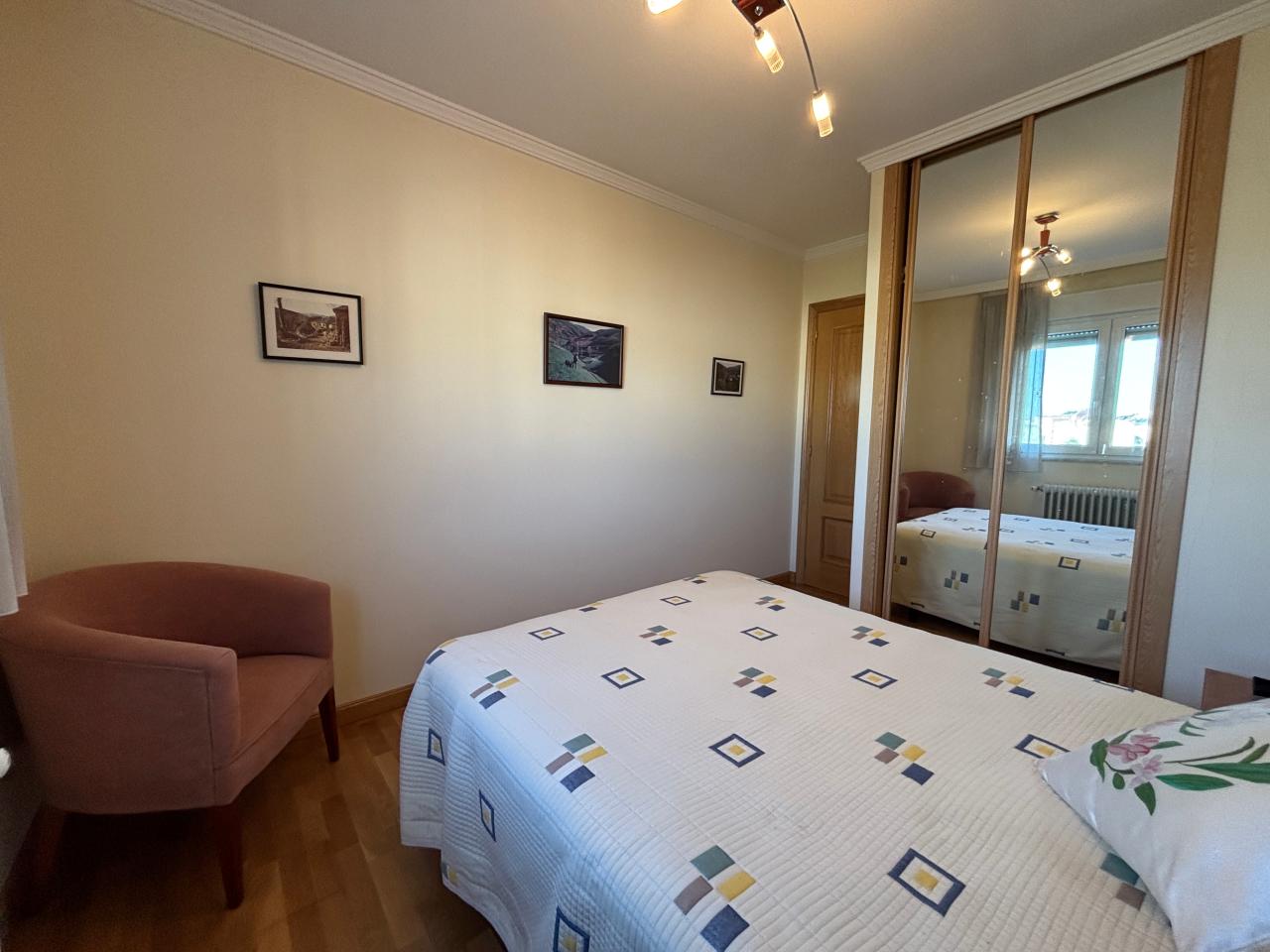 El piso cuenta con 3 acogedores dormitorios, con armarios empotrados que maximizan el espacio. Además, dispone de 2 cuartos de baño modernos y funcionales, así como una zona de lavandería que facilita las tareas del día a día. Las ventanas al exterior en todas las estancias principales garantizan luz natural durante todo el día, creando un ambiente cálido y acogedor.
