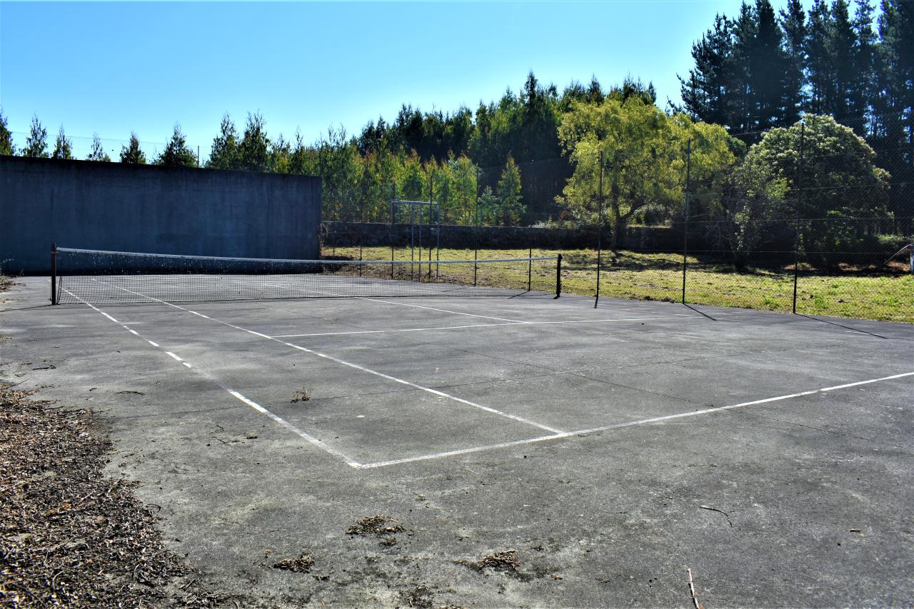Además de la vivienda y de los anexos descritos, tenemos una zona deportiva con una pista de tenis, portería de fútbol. Y una zona de invernaderos.