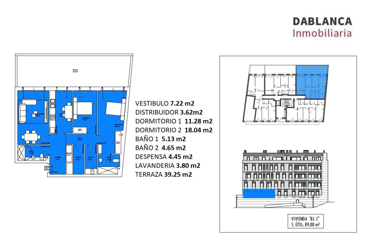 Apartamento de 2 habitaciones, 2 baños, lavandería, despensa, plaza de garaje y trastero. Gran terraza de 40 metros cuadrados. Orientación Oeste.